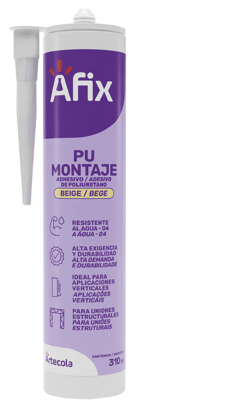 Afix PU Montagem é um adesivo monocomponente de poliuretano que cura com a umidade.